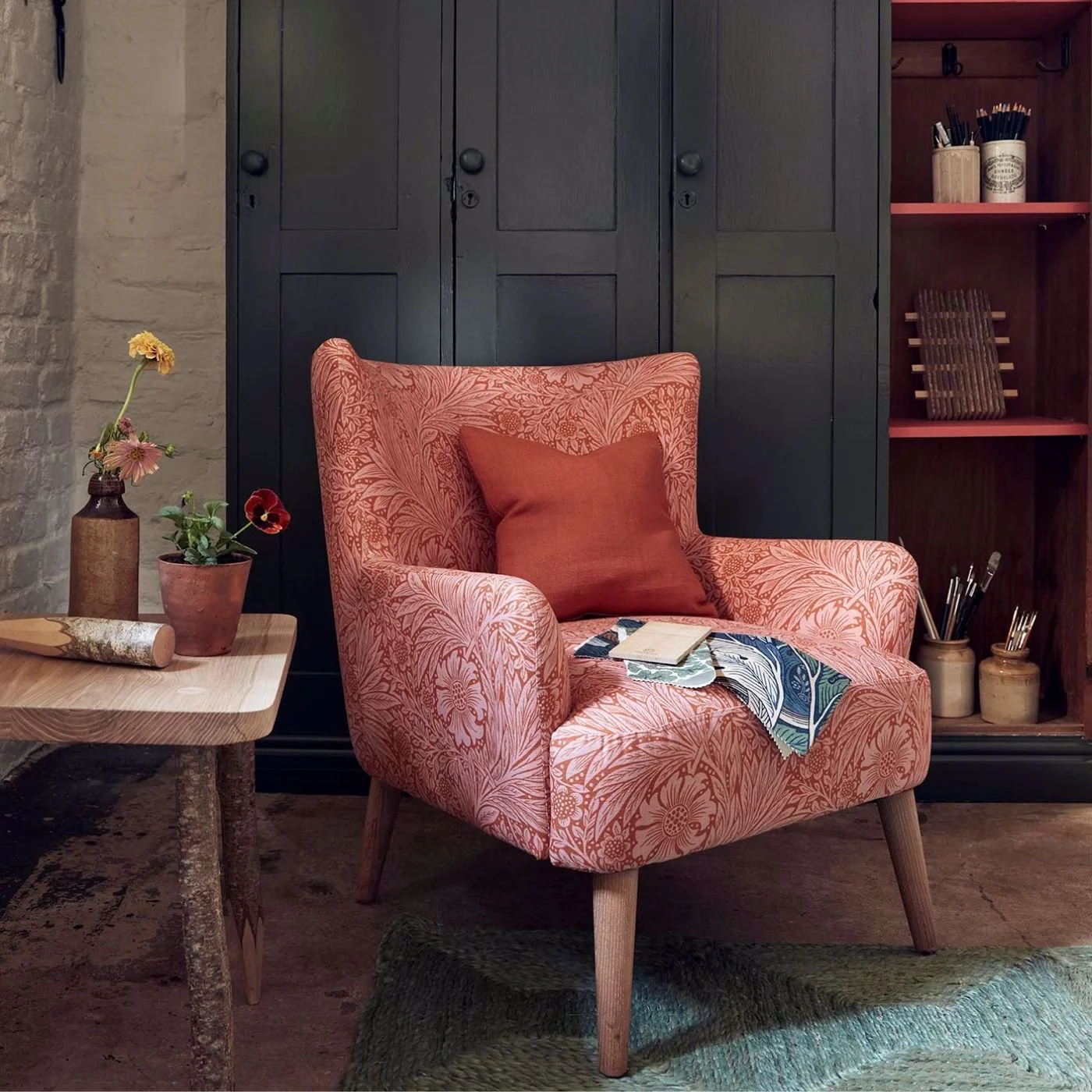 The darkest green in the collection inspired by evergreen trees, this lovely deep colour creates a little drama and atmosphere in your room. Morris famously loved and drew inspiration from the natural world, and in an 1881 lecture on pattern making, Morris said “I must have unmistakable suggestions of gardens and fields, and strange trees, boughs and tendrils, or I can’t do with your pattern.”